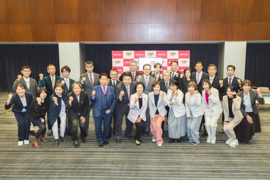 はい。以上が今日出席できた公認候補予定者でございますが、本日都合により参加できなかった公認候補予定者もおりますので、名前だけご紹介いたします。やはた愛。大阪府第13区、比例近畿ブロック公認候補予定者です。山越光敏、比例北関東ブロック公認候補予定者。岡田てつお、比例九州ブロック公認候補予定者。岡田慎、比例九州ブロック公認候補予定者です。