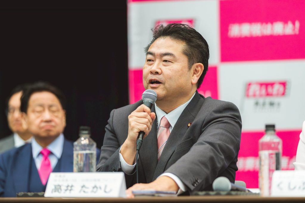 はい。続いて私、高井たかし、埼玉県第13区、比例北関東ブロックの公認候補予定者でございます。今回の選挙、私の選挙区もですね、自民党の他にも野党出るんですけれども、皆、自民党の補完勢力になるんじゃないですか。今、これだけ世界が大変な状況の中で、高市政権をアシストするような、そんな野党は必要ありません。必ず勝ち抜きたいと思います。ありがとうございます。続きまして、加川ゆうみ、茨城県第3区公認候補予定者です。