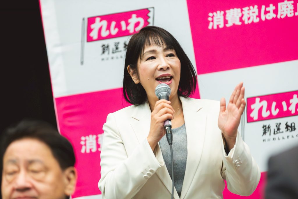 皆さん、お集まりいただきましてありがとうございます。れいわ新選組共同代表大石あきこです。座ってご挨拶させていただきます。昨日、れいわ新選組代表の山本太郎が、健康上の理由で議員辞職いたしました。皆さまにはお騒がせしておりますが、山本太郎の表の活動は本日からなくなりますけれども、私たちれいわ新選組一同、れいわ新選組の存亡をかけてこの選挙戦も戦って参ります。れいわ新選組は2019年に山本太郎が1人で立ち上げ、そこから最大で15名の国会議員に増やして参りました。一方で、国内も一向に経済が上向きませんし、この背景には一人ひとりの使えるお金が少ない。むしろ、財界の意向とかアメリカの意向で人々の手取り、それが留め置かれているんです。その最たるものが消費税。ですから、山本太郎がたった1人でつくった、このれいわ新選組では何より最初に消費税廃止を掲げ、それ以外にも、この国で一生懸命生きる一人ひとりの国民、この国民の生活を底上げし、一人ひとりが胸を張って、尊厳を持って生きられるようにという政策をパッケージにして、れいわ新選組、歩んで参りました。昨日、山本太郎が議員辞職をすることになり、私たちは存亡の危機ではありますけれども、これを一丸となって突破し、皆さんおひとりおひとりにれいわ新選組に参加していただき、1つの国民運動として、この国会の中で本当の国民の生活に根ざした積極財政を勝ち取っていきたい、そのように決意しております。どうぞよろしくお願いします。