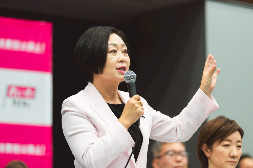 はい。続いてくしぶち万里、東京都第14区、比例東京ブロック公認候補予定者です。