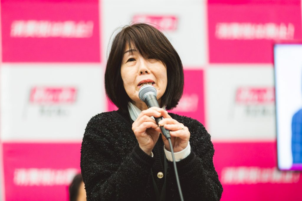皆さん、こんにちは。共同代表、衆議院議員のくしぶち万里です。お集まりありがとうございます。私からも一言申し上げたいと思います。座らせていただきます。大石共同代表からもあった通り、昨日、山本太郎代表の議員辞職という報を受けてですね、新たな世界で、新たなステージで、ここに集ったすべての候補者が心を1つに戦いを進めていくことになりました。私は全く悲観をしておりません。なぜなら、山本太郎代表が6年間、命を懸けてつくり上げてきた政治のプラットフォームがれいわ新選組。そこに全国の草の根の支持者の方々、地方議員、ボランティアの方々、多くの仲間たちが、このプラットフォームをつくって、このツールで一緒に日本を変えていこうといううねりが今、広がってきているからです。私たちの使命はこうした国会の外にいる多くの皆さんと一緒に、このうねりをさらに厚く拡げていくこと。そして一緒に日本を変えて、私たちのための政治。今、一部の人たちのための政治に富が集中し、そして多くの99%の人たちがどんどんどんどん貧困化しています。だから少子化も加速しているんです。このまま日本が衰退しているのを黙って見ておくわけにはいきません。今の世代が、なんとかならずして先の未来はありません。先の未来をつくるためにも今の私たちが今を生きる人たちと一緒に命を守り、暮らしを守り、経済を底上げして、経済が強い国こそが、日本が強くなる国です。どんなに武器を増やしても、国民が貧しい国は強い国とは言えません。国民が飢えるような国が決して強い国でしょうか。今、お米が買えなくて、いまだに1年間もこの米の高さで買ったことがない。1日3食食べられない。そんな人たちがいます。老老介護で何人もの方が自分たちが苦しい、そんな中で介護殺人や、そして介護離職や多くの方々が命を削られるような思いをしているんです。決して自己責任ではなく、すべて政治の政策の失敗。だから私たちは命を守る。そして、みんなの生活と暮らしの底上げをしていくために一致団結して、この選挙を戦い抜かなければならない、そう思っています。私たちはもっと豊かになれる道があるはずです。高市政権は「防衛産業が成長産業だ」、こう言って防衛費を増やし、その財源は国民に増税という形で押し付けようとしています。そんなことを私たちは許せません。そして許しません。私たちは積極財政で医療や介護、そして教育、また農業、こうしたところにしっかり投資をすることでみんなが豊かになれる経済の道があるんだということをしっかり選挙で示していく。そして勝ち上がって「生きててよかった」、そう思える国へしっかりこの国を前に進めていく先頭に立って参りますので、どうか皆さん、応援よろしくお願いいたします。