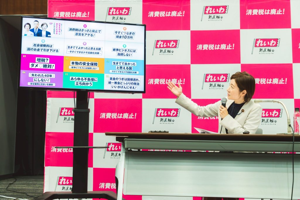 すみません。NHKです。公約の全般的なところでお伺いしたいんですけども。消費税廃止とか現金給付、これまで訴え続けてきたことを改めて入れた形になりますけども。今回、このタイミングで改めて訴えていきたいこと、政策の必要性っていうところについて教えていただけますでしょうか。
