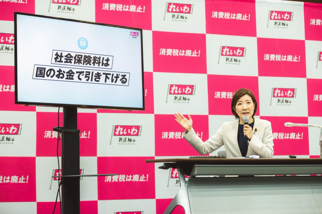 フリーランスの白坂です。社会保険料についてお聞きいたします。「社会保険料は国のお金で引き下げる」ということなんですけども、似たような政策で維新の会も、やっぱり社会保険料を下げるというような政策を訴えていたかと思います。れいわ新選組と維新の会、この社会保険の下げるという、目標は同じかもしれないんですけど、その違いですね、その違いを教えていただければと思います。