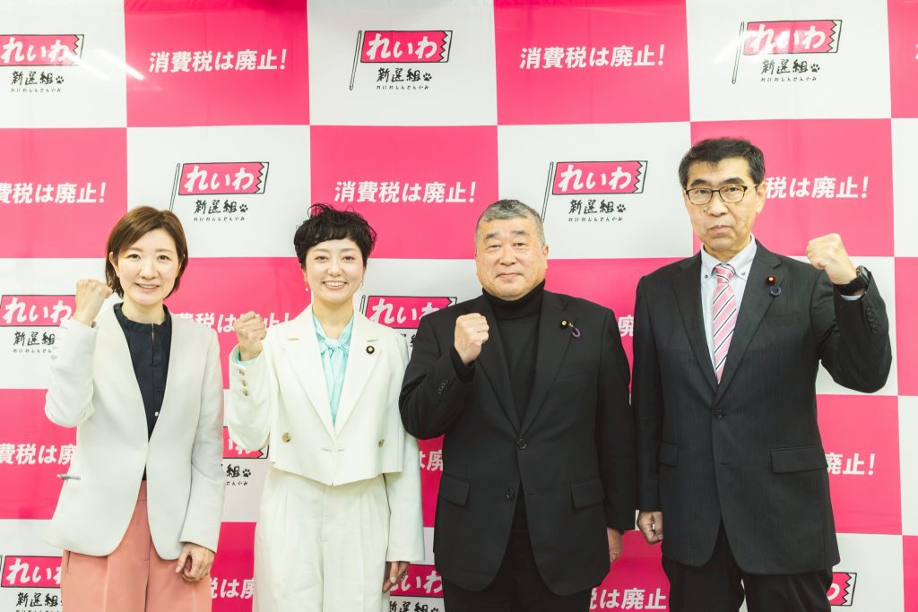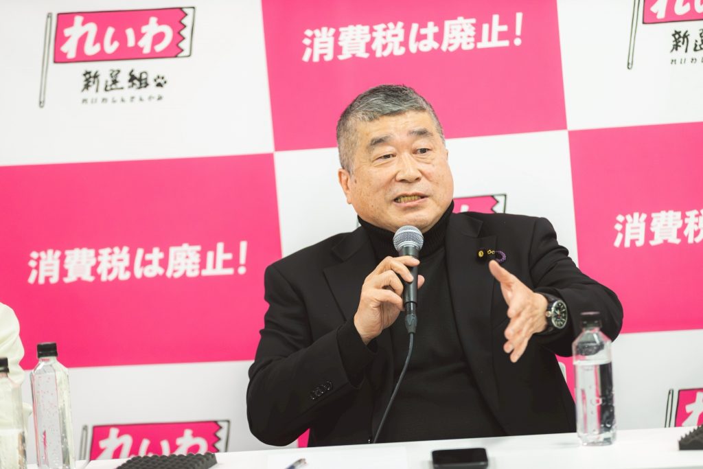 NHKです。両共同代表にお伺いしたいんですけども、先ほど高市さんが総理大臣に選出されましたけども、まずこの受け止めについて教えていただきたいのと、衆院選で自民党が圧勝したことで新年度予算案など年度内成立という話もありますけども、これに対してれいわとしてどう対峙していくのか。消費税廃止実現に向けてもですね、この国会論戦、どのようにしていきたいのかっていうところを教えていただければと思います。