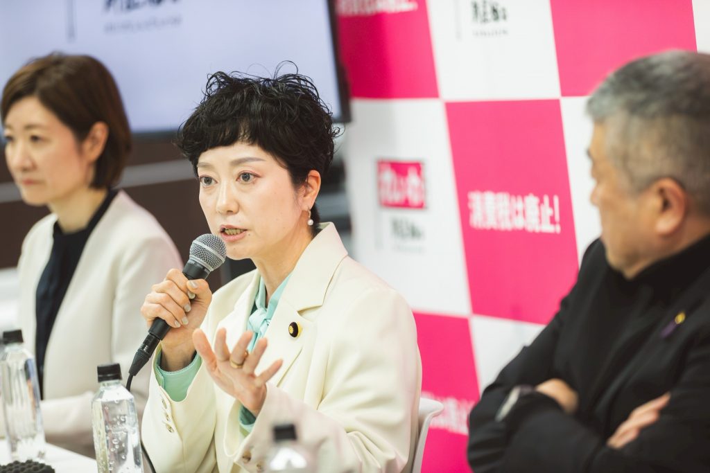 じゃ私から先に言って、次、振りますね。高市総理になった受け止めというのは、先ほど私が熱く語った内容と同じで、そもそも解散総選挙があるべきではなかったし、高市早苗さんが総理にふさわしいかどうかという意味ではふさわしくないですよ。なのでうちも「奥田ふみよ」と首班指名に書かせていただきましたけれどもね。なので受け止めとしては、もうこれあり得ないし。どうやってこの統一教会のスキャンダル、スキャンダルというか、これ国を揺るがす問題ですので、隣の韓国では既に膿を出し始めてるわけですよね。統一教会の今のトップの韓鶴子さんを去年逮捕されてますし、押収された文書の中で、日本の自民党と大きく繋がってきたと。290名も自民党の選挙応援したってその文書に書いてあって。それすべてが事実かどうかわかりませんよ。だけれども例えばある新聞社の記者さんが統一教会のパーティーか何かに招待されていたと、会合にっていうのが実際事実だったりするんですよ。その新聞社が認めてますから。不適切だったと。個人的な対応を記者がしていた、みたいなね。だから信憑性があるんですよ、かなり、その文書の中には。だったら徹底検証しないといけないでしょ。韓国では前の大統領の妻が統一教会から賄賂を貰ってたっていうことで実刑判決を受けてるんですよね。特にこの過程ですよ。今、世界ではその渦中なんですよ。やっぱり統一教会みたいな、「第三次世界大戦を必ず起こさなければならない」と、「そのために日本国民の税金3〜4倍にしろ、生活水準を半分にしていい」っていう、そういう教義をね、これ日本だけじゃないでしょ? いろんなところでそういう悪い教義を持った宗教組織がその宗教的信念で政権の中に入り込み意思決定を左右する、操るなんてことがあったらこれ国が滅びますから。だから対応している国もあるわけでしょ? その流れを受けて、今、このタイミングでやるべきところをやったのが解散で。で、高市政権が大多数を取ったというわけですから、これ日本の国滅ぶ危機じゃないでしょうか? それ、れいわだけで到底やれませんよ。なので受け止めとしては私はそういう受け止め。はい。だけれども、皆さんもこの事態は受け止めていただきたい。たった1人とか、1党、小さなもう激減させられた政党でできることではないですから。だけど、その継承、その声は上げ続けますよ。はい。新年度予算に関しても同様ですよね。既にもう増税、この4月から始まるものもあれば、今回の予算案も大変なものですよね。対米貢献、5500億ドル、約80兆円相当の対米貢献。対米投資ですね。これも第1弾。ガス開発かな? ガス田開発っていうのが発表されて、5兆円レベル。で、今回の予算案もかなりの、数兆円レベルの資産強化言われてますよね。それってそれに対して野党もなんか「日本も日本版のそういう投資枠組みつくればいいんだ」みたいな話してるんですよ。何言ってんの?って話ですよ。一部の大資本、大金持ちの資本たちが利益を得る。対米投資で言えば日本が投資した金がペイされるまで1対1。何で日本が100%投資しているのに、投資というか返済義務のない出資なんですよね。融資じゃなくて。融資であったら貸したら返してもらえるでしょ? そうじゃないんです。出資という形で日本が100%リスク取らされてるのにそのバックがペイするまでが日本とアメリカ、1対1。で、それがペイして以降はアメリカが9割なんですよ。1対9になる。これもうほとんど儲かりようのない事業なんですよ。だからただただ、アメリカに貢ぐという金なんですね。これを政府保証付きの債権を各民間銀行などに発行させるわけですから、結局はこれ、国が補填する、国の責任で出してるのと一緒ですよ。なぜ、なぜ国内に投資しない? でも野党、他の野党、何言ってる? 中道の政調会長になったの、元々、公明党の岡本さんでしょ。あの方自体がこの80兆円の対米投資について「自らの気持ちでやれ」って言った方ですよ、公明党として。これはアメリカに単に貢がされてるじゃなくて、日本の自らの意思としてやれと。そして日本も同じような他国から資金供与を得るような枠組み、ファンドをつくればいいんだっておっしゃってる方が中道の政調会長ですよ。「マインドセットを変えるべきや」言うから、私は「マインドコントロールでしょ、そんなもの」言いましたよ、予算委員会で。私はもう今、衆議院の予算委員会にはいませんけれども。そういう予算委員会が新たな、高市政権圧勝、で、中道はそういう路線。対米貢献80兆円、自ら差し出せ。第1弾、ガス。よかったな。次何やる? じゃ、日本も他国から投資得られるようにしようよって。おかしいでしょうが、それ。で、何? 地球環境ぶっ壊してですよ、一部の大資本がお金出し合って世界をジャム塗ってむしゃむしゃ食べちゃうような、そういうことでしょう? そんなの、どこの世界のどの国民も幸せなんかなりま