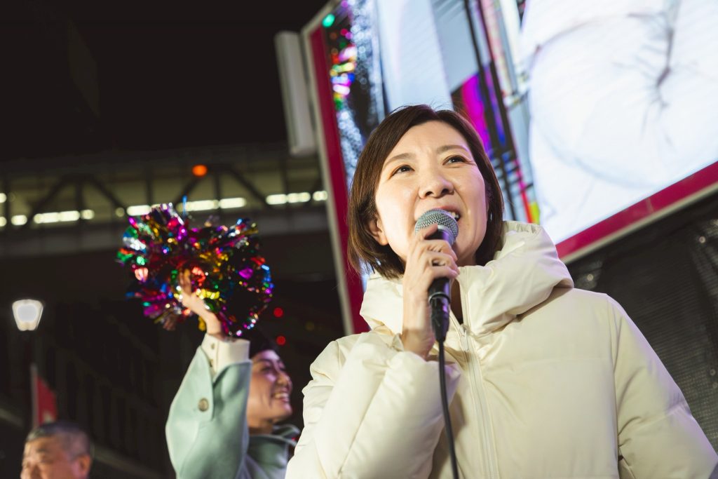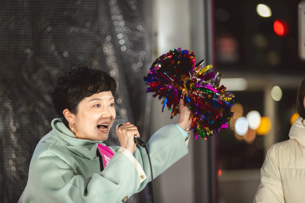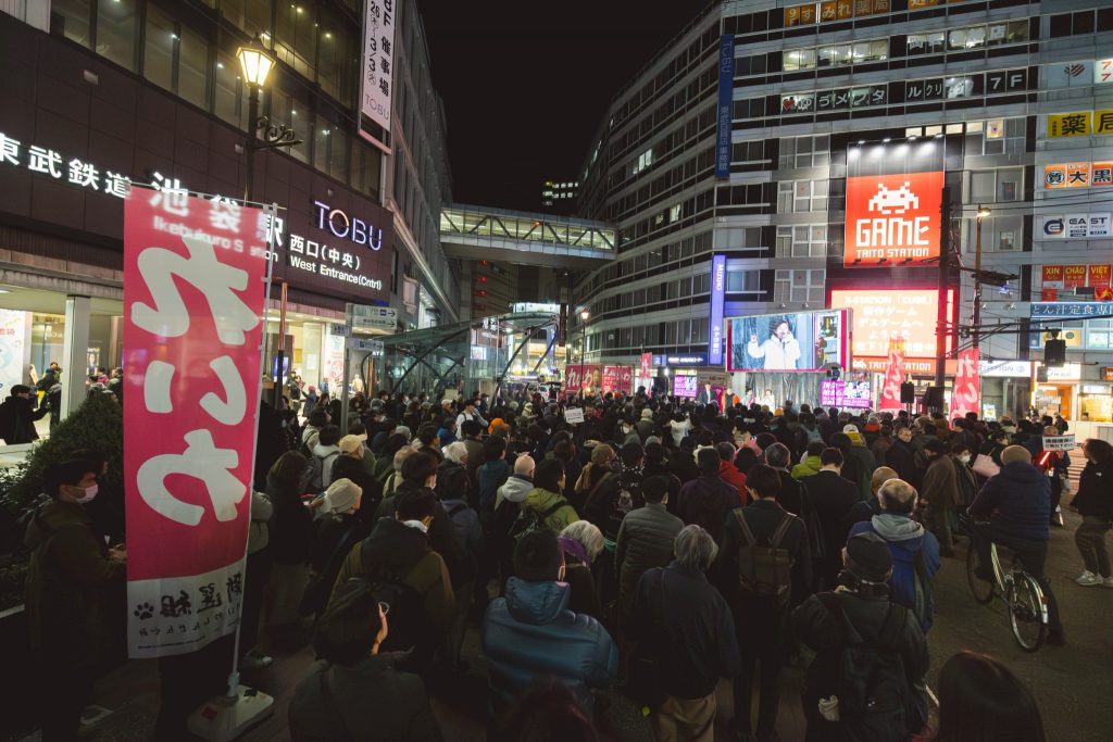 皆さん、こんばんは。れいわ新選組共同代表大石あきこです。たくさんの方、来ていただきましてありがとうございます。そしてここ、道を通っている皆さんもこの声聞いたことないですか? 選挙戦で1回くらいは聞いたことあるはずですよ、このダミ声を。「統一教会がー」とか「高市早苗さーん」って言ってた、この声聞いたことありますでしょ? それが私、大石あきこです。れいわ新選組の共同代表をしつこくやっております。今、ここで街頭演説を私、共同代表の大石あきこ含めて仲間たちと、新しい体制の役員になった人たちと来てますので、ちょっとお足止めていただいて、何言うのかなと、声を少し聞いていただけたらなと思います。そしてお集まりいただいた方、そして配信のカメラはどこでしょうかね? 配信も。今日のこれを視聴してくださってる皆さんもありがとうございます。よろしくお願いします。ありがとうございます。はい。たぶん10分ずつくらい、もう少し過ぎちゃう人もいるかもしれない、私も過ぎるかもしれませんけど、10分ずつくらい1人ずつお話しして。で、質問をお聞きして。で、8時半には終わって、で、その後、もしお写真一緒に撮ってくださる方いらっしゃったらお願いします。