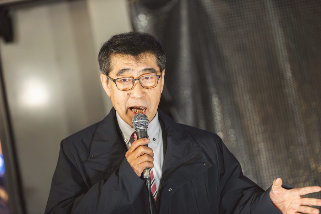 でもね、むちゃくちゃ、今の国会は。3分の2で白紙委任を与えたと思われたら本当にとんでもない。この間、高市さん、嘘ばっかりですよ。とにかくね、弄ぶなと。私、がんサバイバーなんですね、さっき言ったように。あの高額療養費制度、高市さんは総裁選のときに、去年のあの総裁選のときに、5人の候補者の中でただ1人だけ、「高額療養費制度、値上げ反対。患者負担を上げるのはダメです」と言ったんですよ。嘘なんですよ。一事が万事、これ。何言ったらウケるのか。人気取りのためにコロコロコロコロ政策を変えるというのがあの人なんですよ。ですから消費税、何度ぶれてんでしょう。だから、あの人の言うことは信用できない。しかも、この消費税の考え方っていうのが、私たちれいわ新選組以外は全くね、政争の具にしてるだけなんです。食料品の税率ゼロ、たった2年間? 一体何なんですか? これ。物価高対策にもならないじゃないですか。高市さんの言う、あの「責任ある積極財政」、これ結局はお金の投資先、もうこの3ヶ月でわかりましたよね、アメリカですよ。80兆円も投資をする。しかし投資したら上がりがある。それ9割持っていかれるんですもん。中学校のときの教科書で習いませんでした? ペリーさんが浦賀に来ましたよ。米軍の東インド艦隊、いわゆる黒船っていうのを率いて。だから日本はね、その圧力に負けてね、不平等条約を結んだんですよ。結ばされたんですよ。日米修好通商条約というね。これね、今とよく似てる。治外法権与えてるんですよ。日本であの時、アメリカの商売をやれるところで、アメリカ人が罪を犯しても日本は裁けないという行事裁判権というのを与えている。そして関税自主権もなかったんです。今とそっくりなんですけど、今のほうがもっと酷いんですよ。何十倍も酷いんですよ。中学校の教科書で「不平等」って書いてるあの条約よりももっと酷いことをやられてるのに、マスコミ、何で言わないんですか? おかしいじゃないですか。示しつかないじゃないですか。ぜひ、この高市政権のお金の投入先はもうはっきりしました。去年のあの補正予算のときからそうです。史上最大の物価高(対策)? 18兆いくら?。でもあの参議院選挙のときに2万円ずつ給付するって言いましたよね。もうなくなりましたけど。結局ですね、18兆円の行き先、物価高対策としては1人1万円くらいですよ。じゃあ、あの物価高対策に紛れて8500億、防衛費の増強ですよ、あの補正予算の中で。さらには辺野古の新基地の建設費もその中に紛れ込んでんです。どこが物価高対策なんですか? もう軍拡まっしぐら。「日本列島を、強くする。豊かにする」なんて書いてありましたね、自民党のポスターにね。日本列島を強くすると言いながら、隣の国のカルト教団から献金を受けていては世話ないんですけどね。日本列島を強くする、日本を守るためには、その軍拡と合わせて国民を監視していく。強くするためには国民我慢してくれ、負担してくれ、こういう政治がますますね、これからどんどんどんどん進んでいきますよ、このままだと。ぜひ皆さん、私が衆議院の中でただ1人の議席になったんですけど、なんとか首の皮1つ繋がった。そしてその前には命も繋がった。私はある意味、使命感も感じてね、国会だけでは足りないところは、ぜひ広範な国民の皆さんと一緒にね、連携をしながら、あの腐った国会、鬼だらけの国会、退治していきたいと思います。まずは消費税の廃止。そして私たちは、政治をね、政治の中で空気を読んでる人ばっかり、やっぱり今日見てるとね、ニコニコニコニコしながら握手してんですよ。そんな空気を読む政治ではなくて、空気変えますよ。奥田ふみよを先頭に、空気を変えていきます。私も実は幹事長という職、重責です。国対委員長、いずれも党務は、実は8ヶ月前からのれいわ新選組党員なんです。でも私はね、本当に素晴らしいボランティアの皆さんだと思う。こんなに一生懸命な「政治を変えたい。一緒に変えたい」という人たちって見たことないんです。まだまだね、反転攻勢に出れますよ。一緒に頑張りましょう。どうか皆さん、よろしくお願いいたします。山本ジョージでございました。