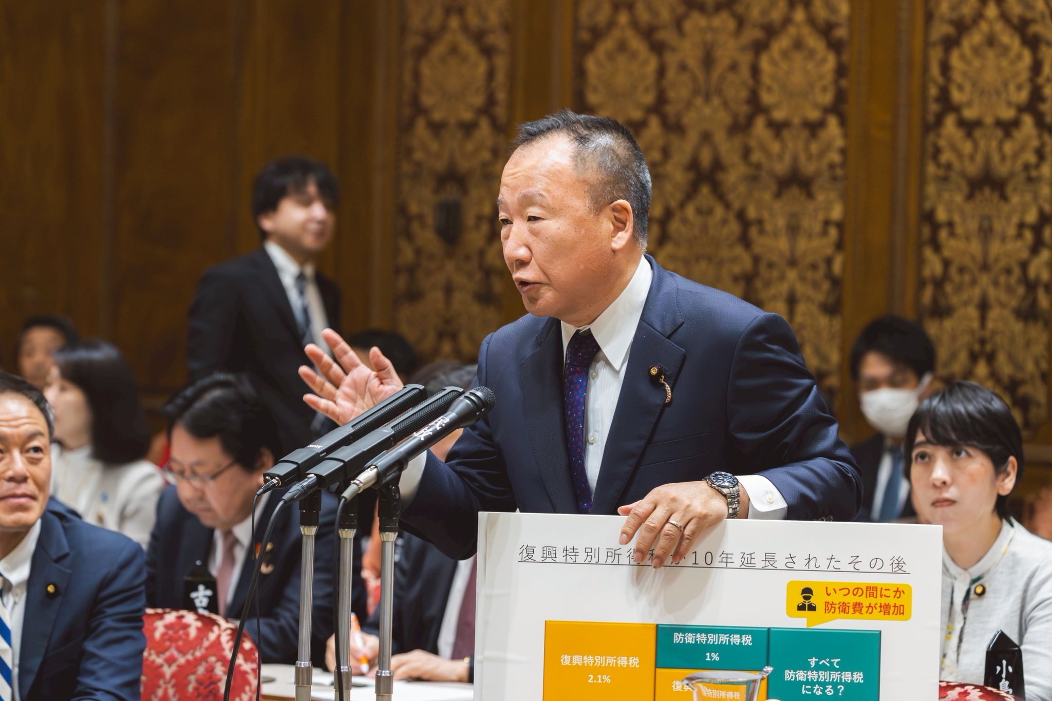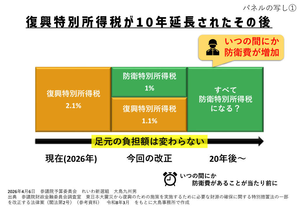 足元の負担は変わらないということで、これ10年延長されるわけですけど、10年延長された後はすべてこの防衛特別所得税になるんじゃないか?という懸念があるという、こういった指摘をさせていただこうという風に思っているわけですね。