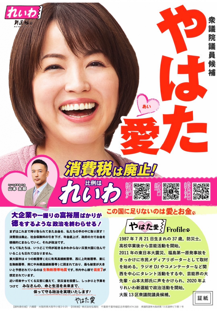 やはた愛(衆院選2024 大阪13区 公認候補)