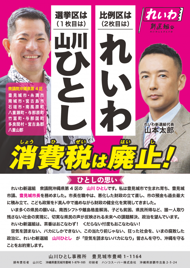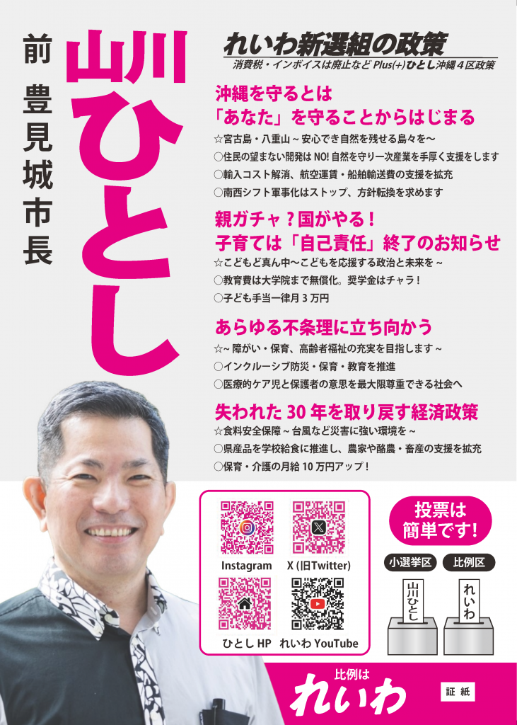 山川ひとし(衆院選2024 沖縄4区・比例九州ブロック 公認候補)