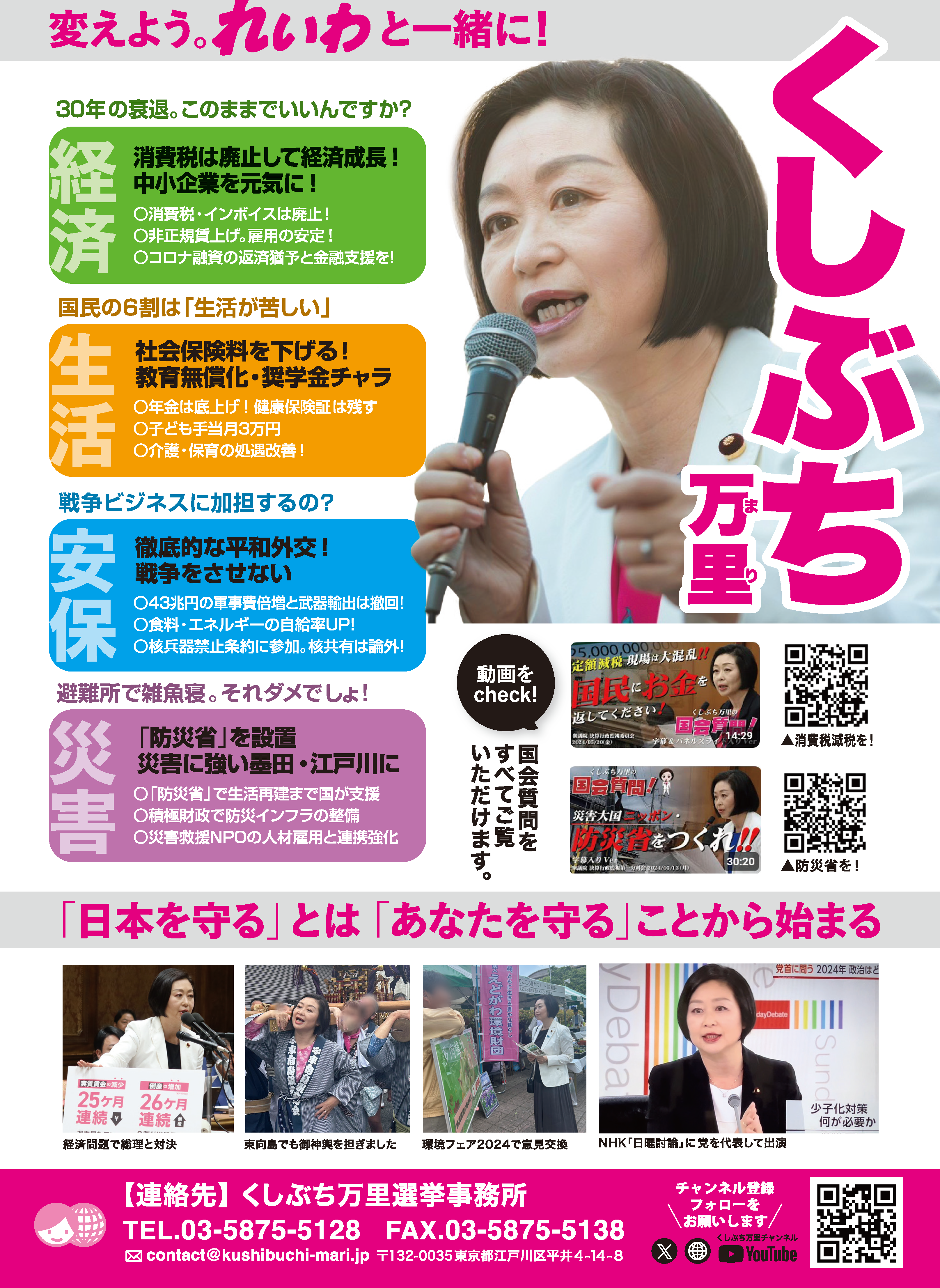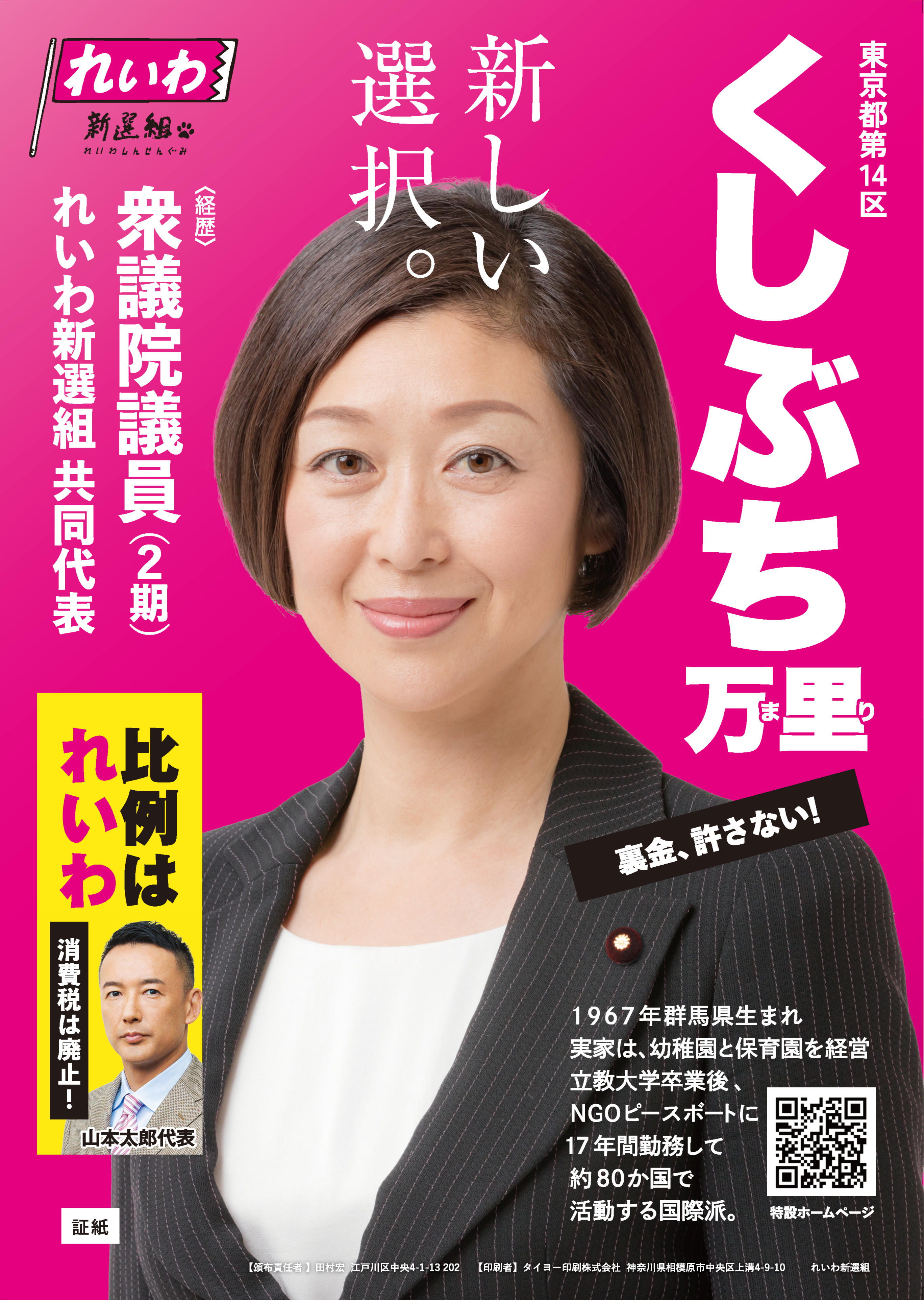 くしぶち万里(共同代表・衆院選2024 東京14区・比例東京ブロック 公認候補)