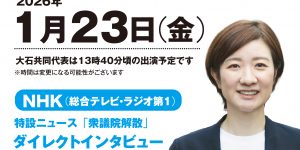 【メディア出演!】2026年1月27日(火) 大石あきこ 共同代表 メディア出演情報!