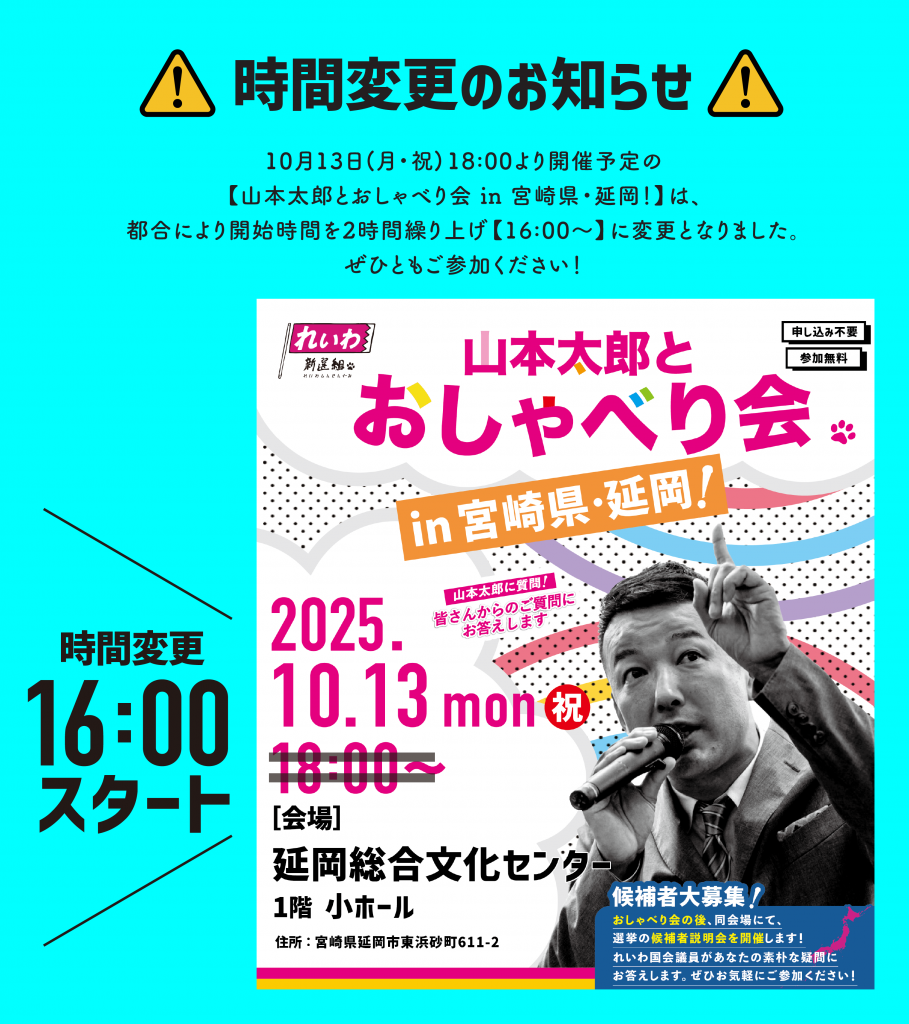 【山本太郎とおしゃべり会 in 宮崎県・延岡市!】