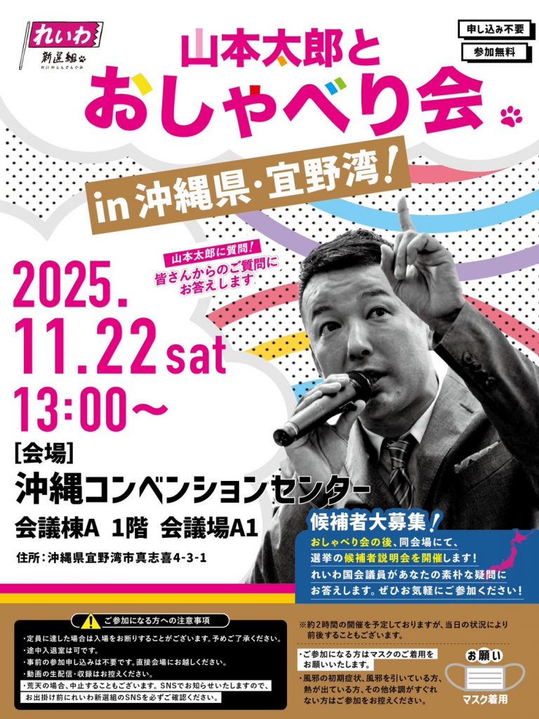 れいわ新選組 山本太郎とおしゃべり会 in 沖縄県・宜野湾市!