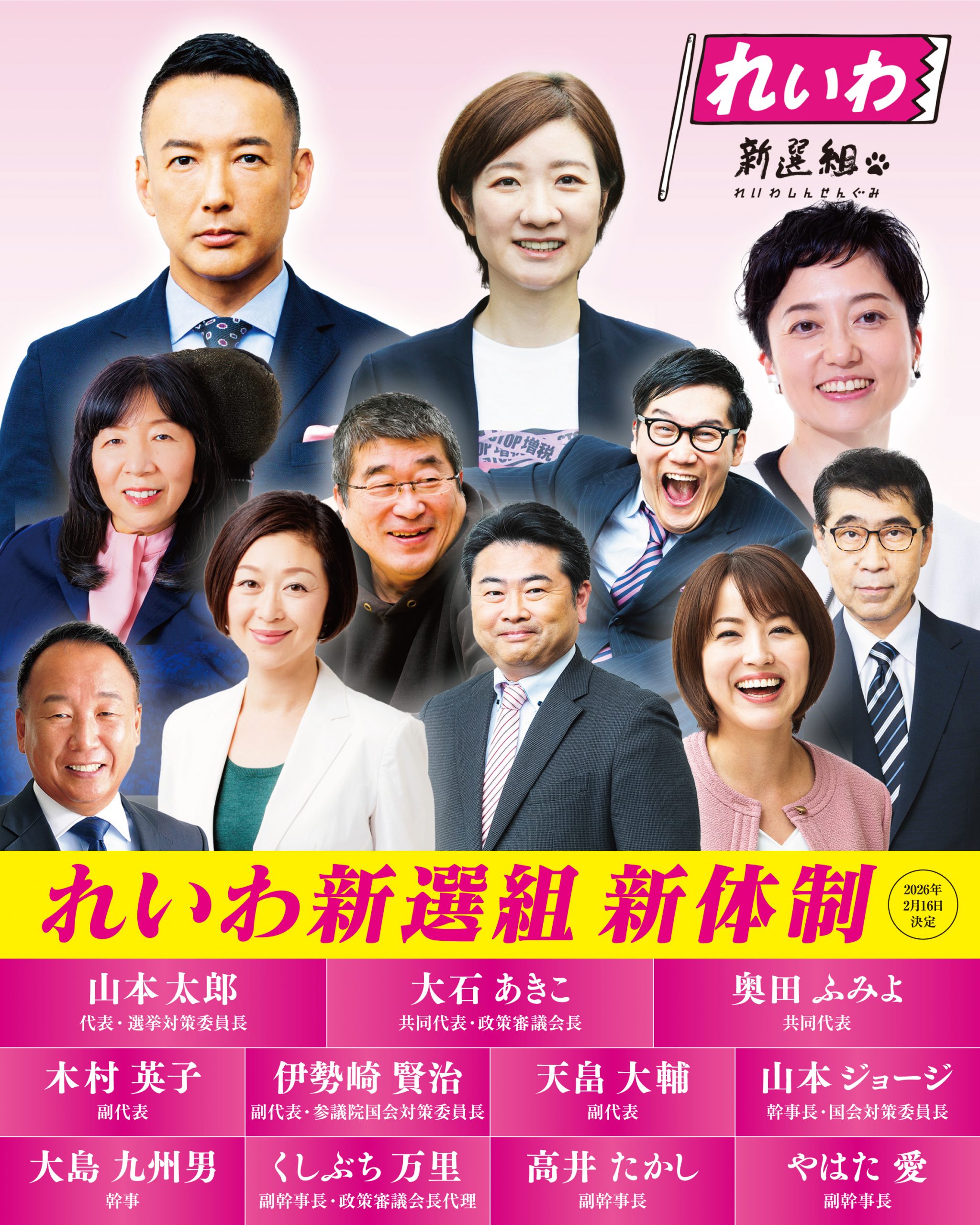 副幹事長:高井たかし、くしぶち万里、やはた愛