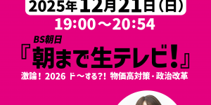 【メディア出演情報!】2025年12月21日(日) やはた愛 衆議院議員 朝まで生テレビ! 生出演!