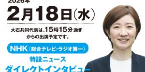 【メディア出演!】2026年2月18日(水) 大石あきこ 共同代表 メディア出演情報!
